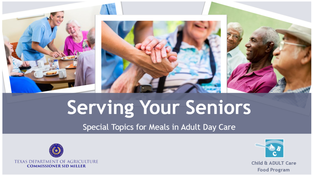 This is self-paced course to build on CACFP requirements and best practices for the Adult Day Care audience. Topics include offer vs. serve, dietary accommodations, special nutrient needs, and making mealtime pleasant. The training does not cover the entire scope of the program. Participants are responsible for knowing and understanding all handbooks, manuals, alerts, notices and guidance.